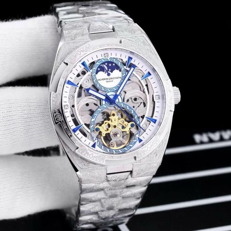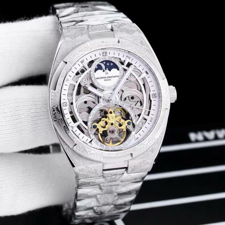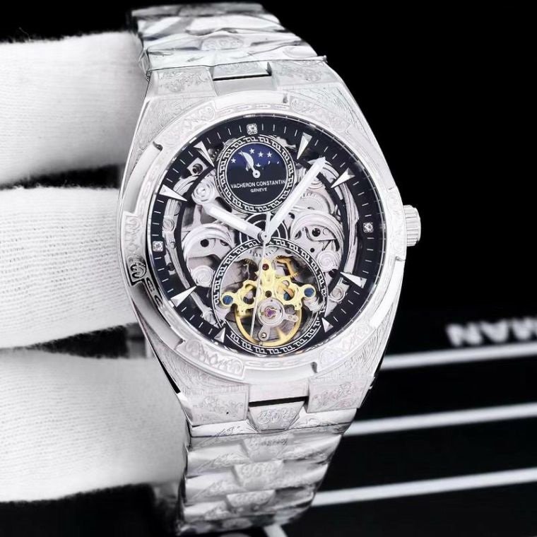 Vacheron Constantin Style Skeleton Silver Luxury Men’s Watch